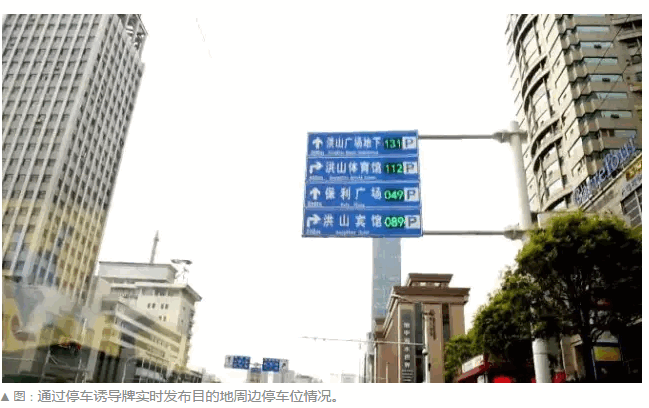 武汉交警支队在线上通过导航地图进行引导外,还在商圈、“医圈”、“校圈”及旅游景点周边等处建设了100块二级停车诱导牌、200块三级诱导牌,实时发布交通路况和停车场车位信息,引导市民出行,方便市民及时了解停车位信息。