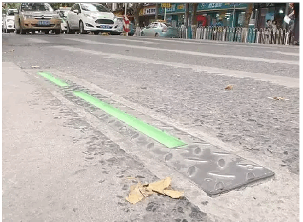 该系统由特殊材料制成,在武汉市内尚属首次使用。它铺设在人行横道地面上,能够经受零下30℃-100℃的温度,基本与地面平齐,不影响行人和车辆的正常通行,踩上去不打滑不磕绊,也不怕雨水浸泡、烈日暴晒,且与路口的信号灯同步变换颜色。