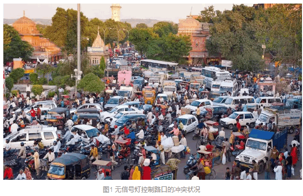 随着社会的发展,人口的增多,城市车辆保有量日益增加,原来运行良好的无信号控制交叉口也由于“人车冲突”、“车车冲突”等问题而变得越来越拥堵。