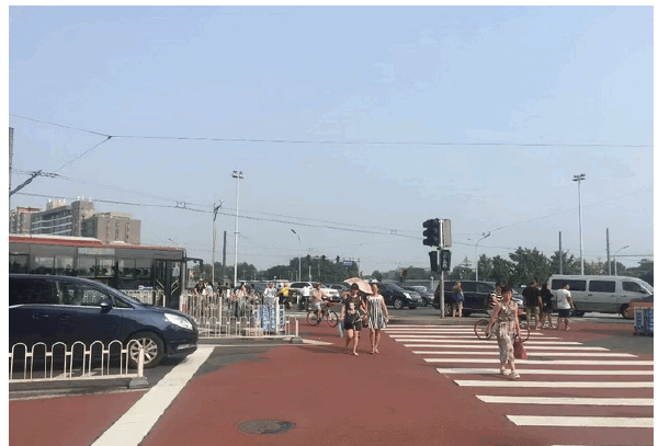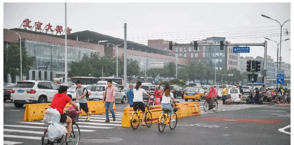 谁说车跟人抢路的习惯不好改?!篱笆最近在北京发现一个神奇的路口——行人通过斑马线时,右转车辆几米外停车等候;机动车通行时,行人在安全岛上等待;最难管的非机动车,也走上了专属“红地毯”……