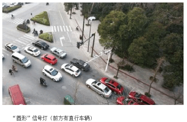 最让新手驾驶员迷糊的是遇到这种圆形LED交通信号灯,因为没有明确的指向,所以不敢贸然右转。遇圆LED交通形信号灯的路口,不管是红灯还是绿灯,在没有禁止右转指示牌的情况下,都是可以直接右转的。不过需要注意的是,不能影响正常通行的行人和车辆。
